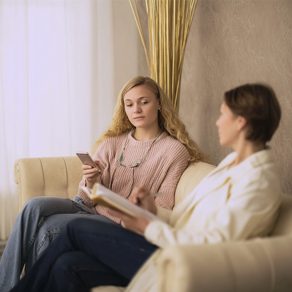 Психолог девушка использует методы когнитивно-поведенческой терапии, адаптированные под женские особенности. Система учитывает менструальный цикл, гормональные изменения и их влияние на эмоциональное состояние.